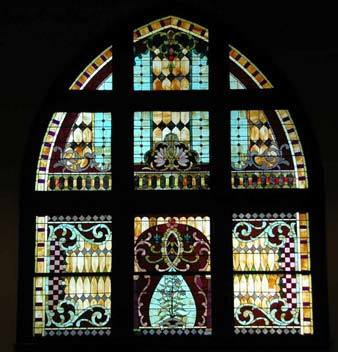 The glass in the lunettes and round windows over the organ was all cut and leaded in Albany by Joseph E. Blanton and Elmer Smith with help from others in the church.