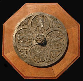 The baptismal font was designed by architect Joseph E. Blanton in memory of Sallie Reynolds Matthews. The lead lid, made by Blanton, includes the symbols of the four Gospels. The handle, a cactus blossom and other floral forms, are symbolic of this ranch country and Mrs. Matthews’ love and knowledge of our wild flowers. The wooden base with the memorial inscription and dates was made in Richmond, Virginia by Biggs Furniture—famous for their true copies of antiques.